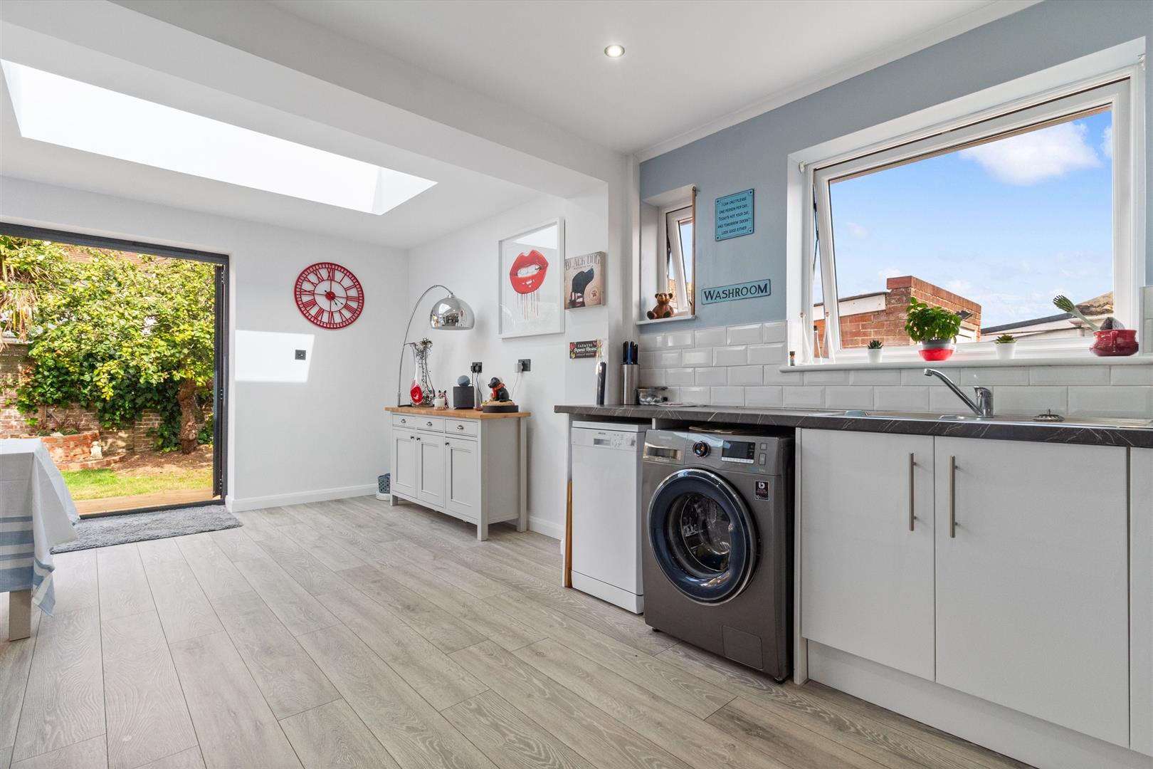 Recently refurbished and extended contemporary living bungalow. Giving a lovely living space in a quiet but accessible road. A recent extension with full width bi-fold doors giving a light, spacious, living/dining/kitchen space where indoors flows in harmony into the beautiful rustic garden, with covered BBQ & seating area.The bungalow has recently had a new heating system, new electrics and more recently a new roof. The property is just off the Brighton Road with a cut through for direct access to the beach. The bike lane runs along here giving safe and immediate access to numerous destinations. The 700 bus runs providing regular public transport into Brighton. An easy flat walk into town where shopping, leisure, theatre and entertainment can be enjoyed. “Splashpoint” leisure centre is just a short walk away, offering multiple opportunities for fitness including 3 swimming pools. Beach saunas are available in numerous positions along the front.The bungalow has a drive providing parking for several cars and has easy access onto the A27, Brighton Road and town centre. East Worthing railway station is just a short walk away.Shopping is in an abundance here, a Co-op 2 minute walk away, Waitrose, Sainsbury’s, Marks & Spencer’s and Lidl all just a short drive away. This bungalow offers a modern living space with ease of access to enjoy a healthy coastal lifestyle with good commuting access.
