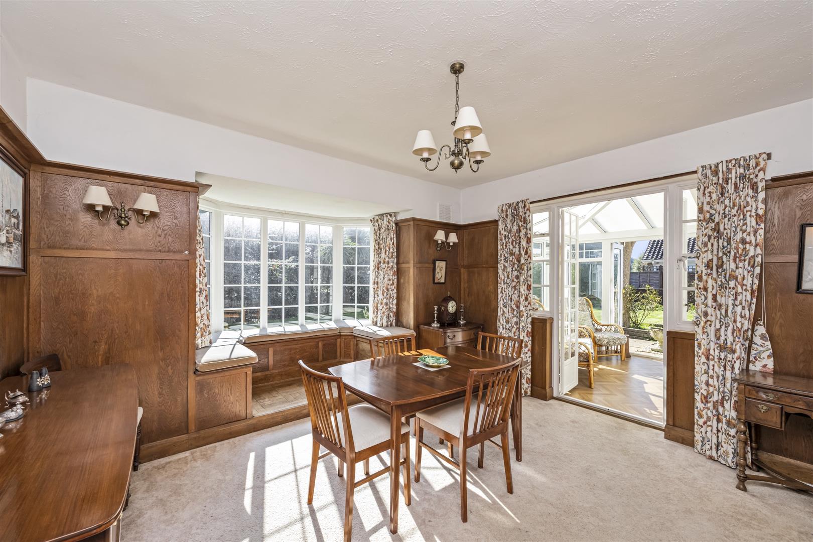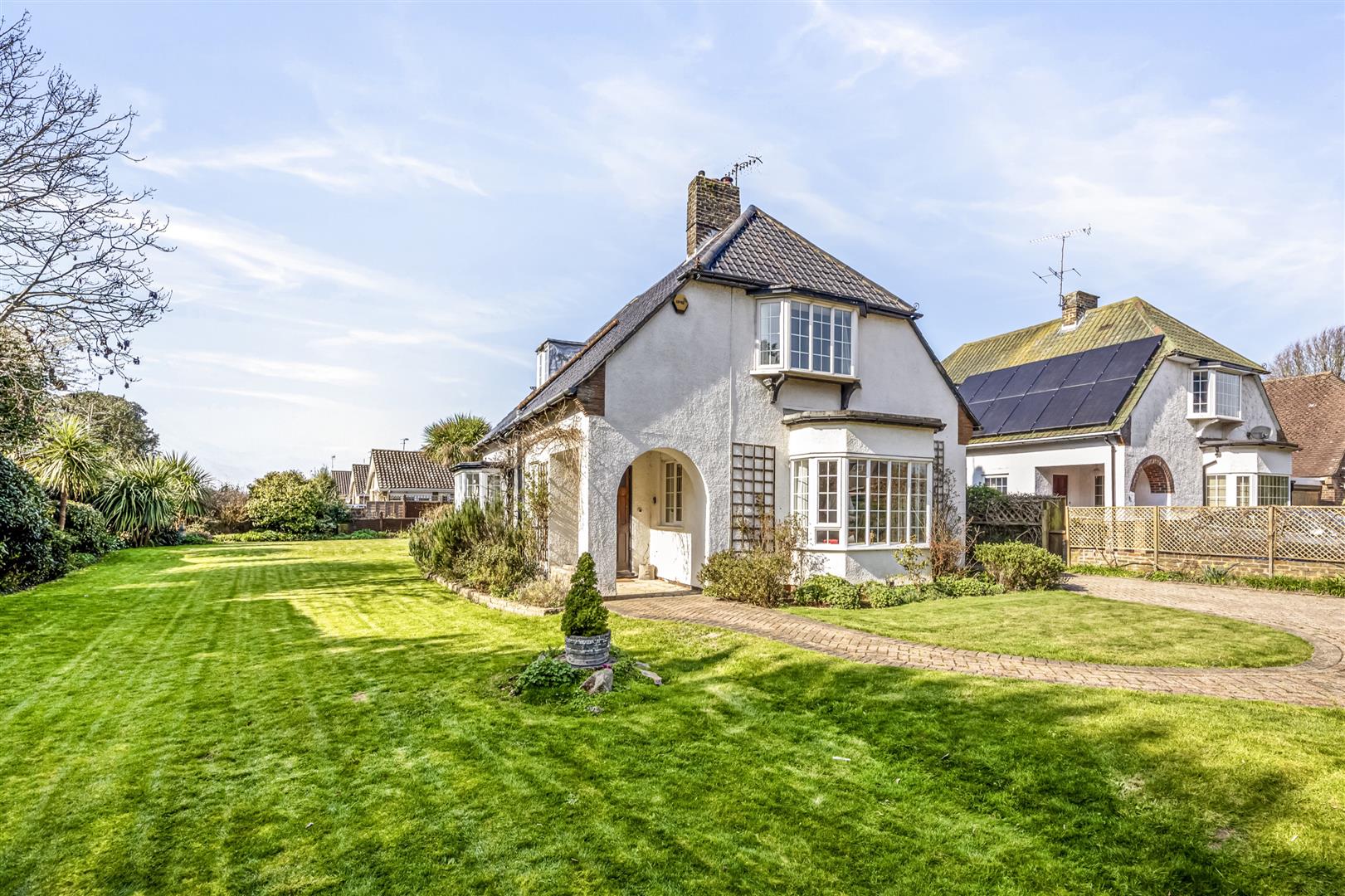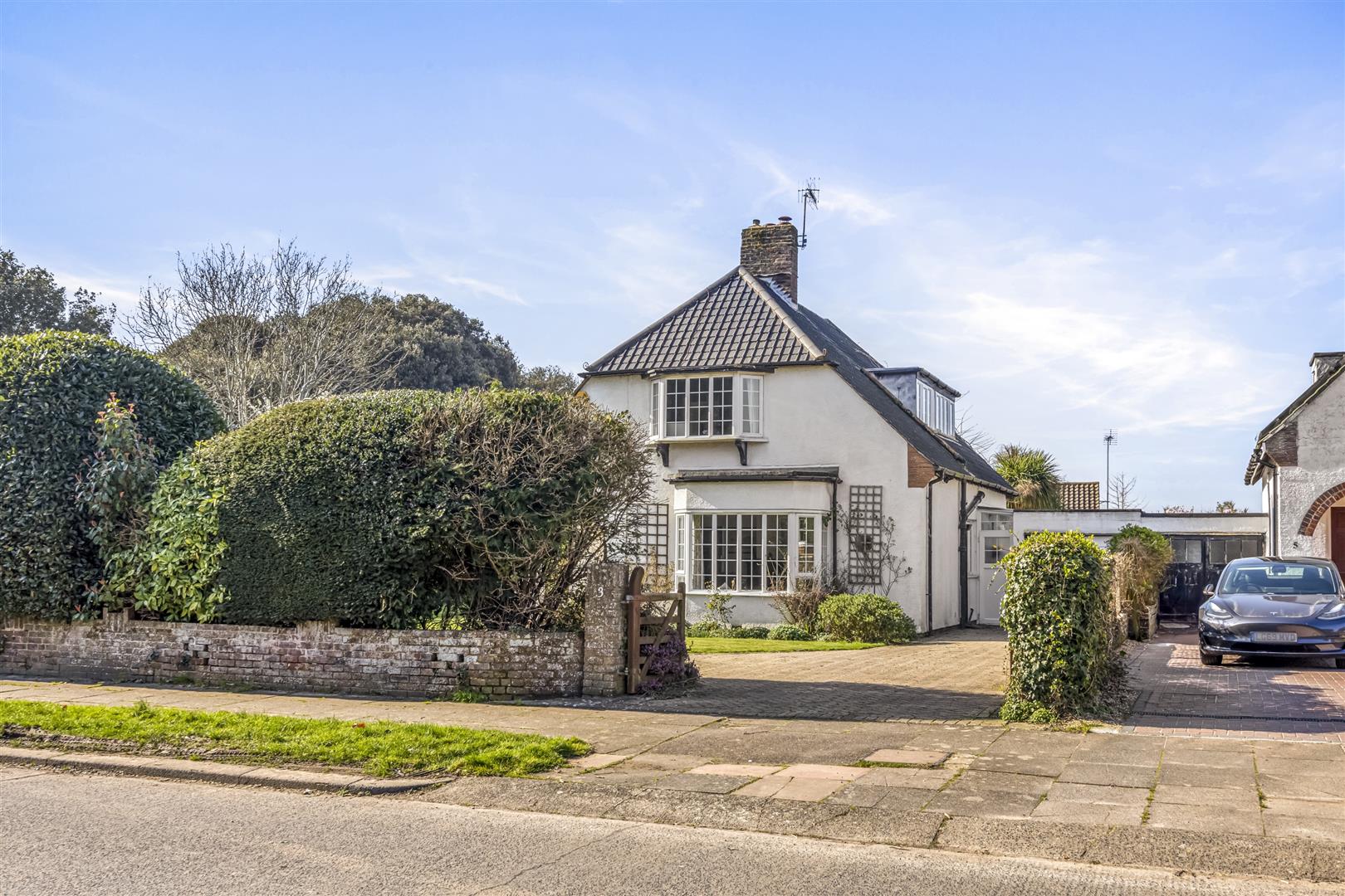 *Open House on Saturday 28th March*Occupying a generous corner plot at the junction of Fernhurst Drive and Bodiam Avenue, this attractive 1930s detached chalet-style home presents a rare opportunity to acquire a spacious family property in one of Goring’s most convenient and highly regarded locations.The property welcomes you via an archway leading to a covered entrance and a solid wood front door opening into a spacious entrance hall, complete with a ground floor cloakroom. The bay-fronted, triple-aspect living room is a wonderfully bright space, centred around a charming feature fireplace. A separate bay-fronted dining room enjoys built-in seating within the bay and French doors that open into a UPVC double glazed conservatory, an ideal spot to relax while enjoying views over the garden.Also on the ground floor is a generously sized bedroom with en-suite wet room, offering flexibility for guests, multigenerational living or a home office. The kitchen is complemented by a pantry, with a door leading out to an enclosed side area that in turn provides access to the garage.Upstairs, there are three further bedrooms including a large master bedroom served by a family bathroom, while additional loft space and eaves storage provide useful practicality.Externally, the property sits on an impressive plot with a five-bar gate opening onto the front garden, which is predominantly laid to brick block paving with lawned sections and mature borders, creating both kerb appeal and ample off-road parking leading to the garage with up-and-over door. The gardens continue around the property, enjoying sunny South and West-facing aspects. These outdoor spaces are mainly laid to lawn with generous patio areas, mature trees and shrub-lined borders, perfect for enjoying long summer afternoons with family and friends.Bodiam Avenue is within easy reach of everyday amenities and coastal lifestyle. Goring-by-Sea railway station is just a short walk away.