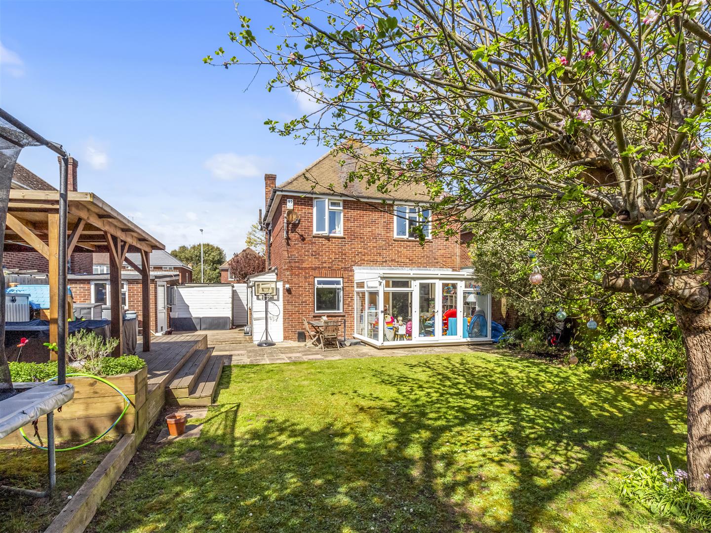 A well presented three bedroom detached home, occupying a slightly wider than average plot. The property provides versatile and well balanced accommodation, ideal for families seeking both space and practicality.The ground floor opens with a welcoming entrance hall featuring tiled flooring and useful understairs storage, leading through to a spacious lounge/diner. This impressive dual aspect room enjoys a pleasant outlook over the rear garden, with sliding doors opening into the conservatory and a log burner creating a cosy focal point. The kitchen is fitted with a comprehensive range of units and work surfaces, with space for appliances and an open aspect through to the living space, enhancing the flow of the home. A lobby area provides direct access out to the garden.The conservatory offers an additional reception space, overlooking the rear garden and providing a flexible area for dining or relaxing throughout the year.To the first floor, there are three good size bedrooms, all well proportioned and suitable for family living. The bedrooms are served by a recently updated family bathroom featuring both a bath and separate shower, along with a separate WC also recently replaced.Externally, the rear garden is a particular feature, enjoying a desirable southerly aspect and offering a private space mainly laid to lawn with mature borders, patio seating area and a raised deck. The garage has been fully converted into two rooms providing a useful office and utility area, adding further flexibility to the property.To the front, there is off road parking for several vehicles. Further benefits include gas central heating and double glazing throughout.