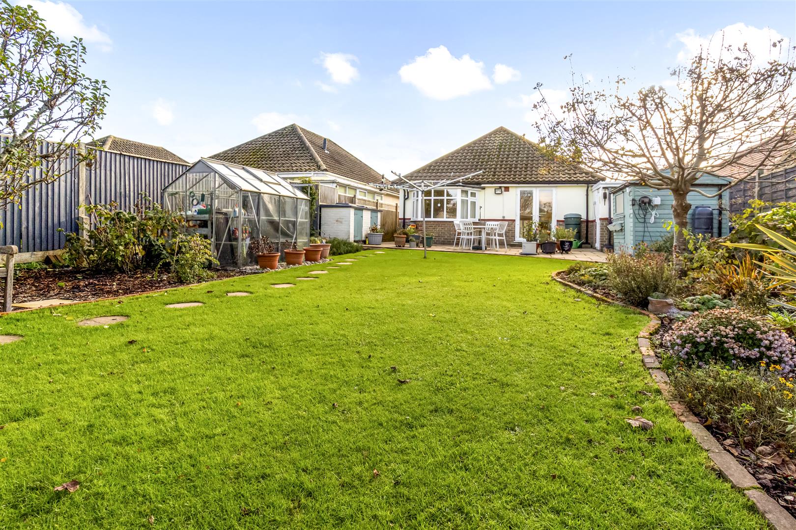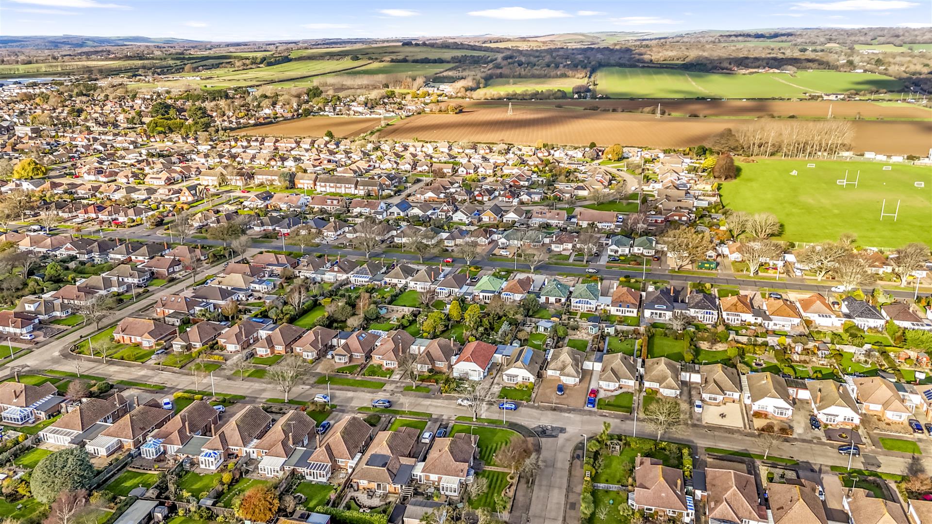 Step into a spacious entrance hall giving access to all rooms. At the front sits a bright south-facing, dual-aspect L-shaped lounge/diner featuring a bay window and newly installed log burner. The refitted 2020 kitchen offers sleek grey units, Quartz worktops, integrated appliances and a stable door to the garden.To the rear, the master bedroom enjoys garden views from its bay window and includes built-in wardrobes. Bedroom two also has fitted wardrobes and doors opening onto the garden, while bedroom three offers a versatile space ideal as a double bedroom, office or playroom. The modern bathroom includes a corner shower, bath, basin, and w/c. There is also a separate w/c adjacent.The property enjoys a generous front garden laid to lawn, setting it well back from the road. A side driveway offers ample off-road parking and leads to the garage, which features an up-and-over door and a side access door to the rear garden.The rear garden begins with a paved patio ideal for outdoor dining and relaxation, with the remainder laid to lawn. A versatile studio with bi-fold doors and laminate flooring sits within the garden suited as a home office or summer house. The bungalow also benefits from owned solar panels on the east and west sides of the roof providing an energy-efficient advantage. There is recently laid flooring throughout and a new combi boiler installed.Situated in the highly desirable residential area on the Ferring/Goring borders. The property is located in close proximity to Ferring Beach, approximately 1 mile away. The property is well situated for primary and secondary schools and falls within the catchment for Goring-by-Sea CofE Primary School, Durrington High School and Oscar Romero School. Your closest train station is Goring-By-Sea which is approximately 0.5 miles away and local bus stops can be found nearby on Goring Way.
