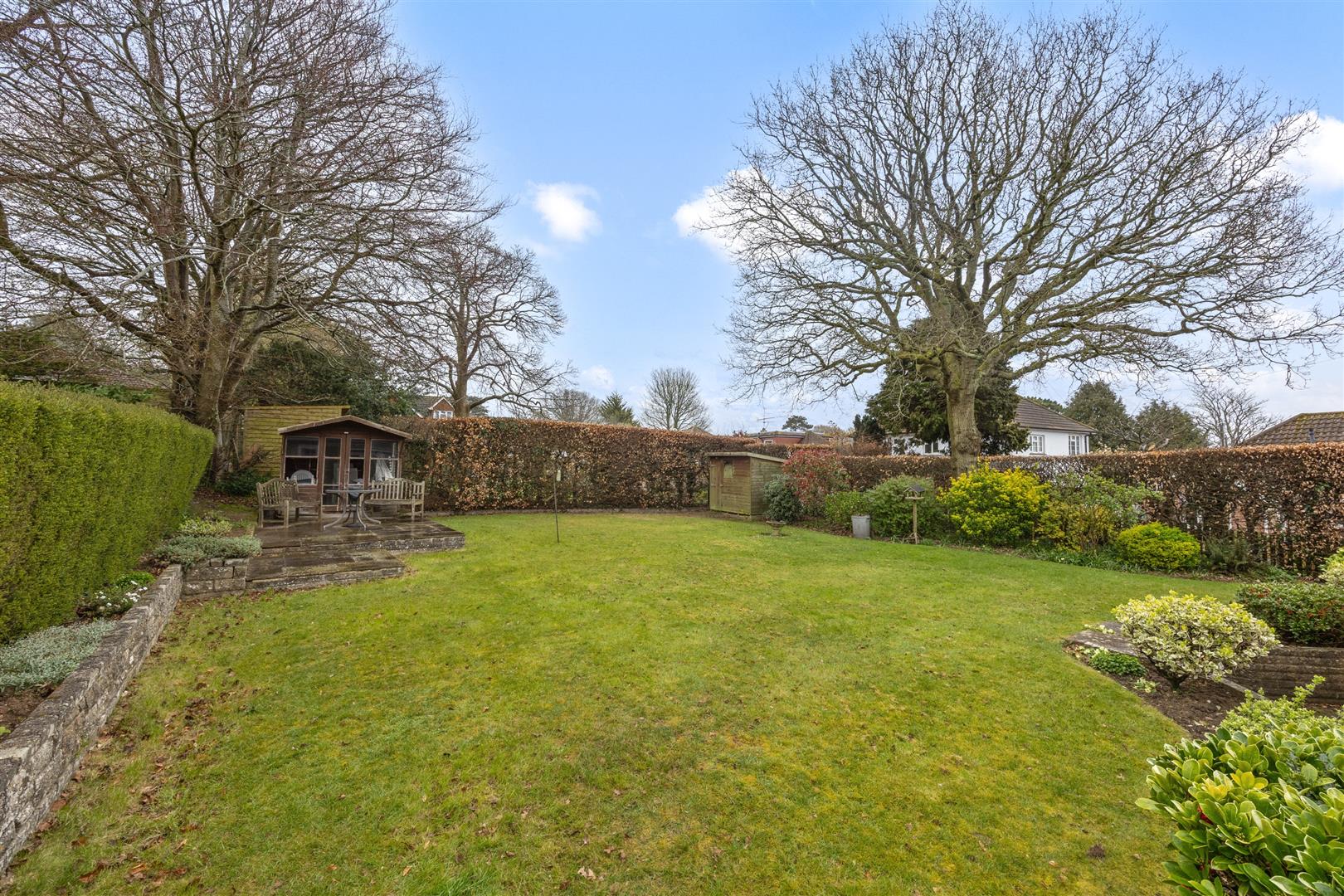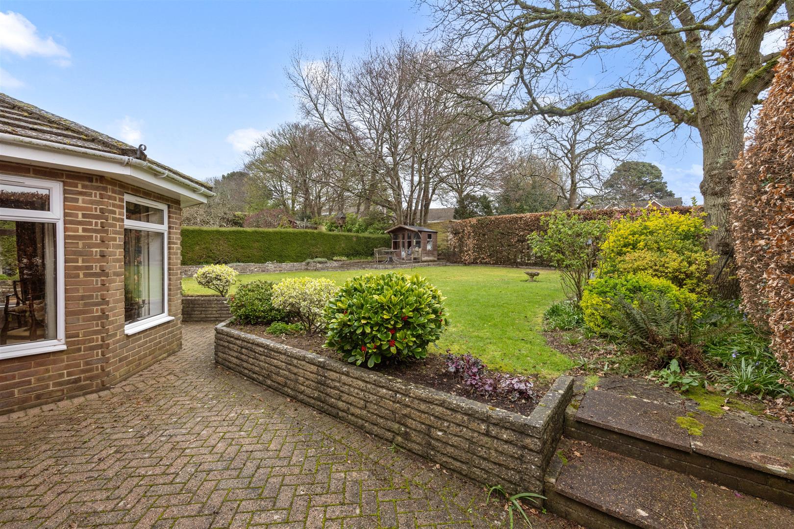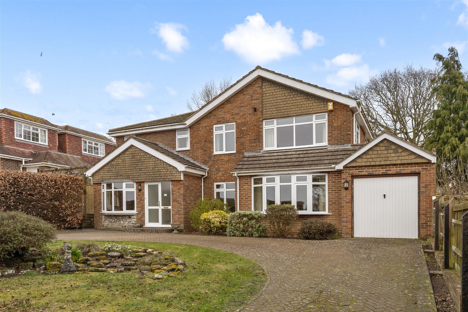 - In-and-out driveway, garage, and a private rear garden, offered for sale with no onward chain
