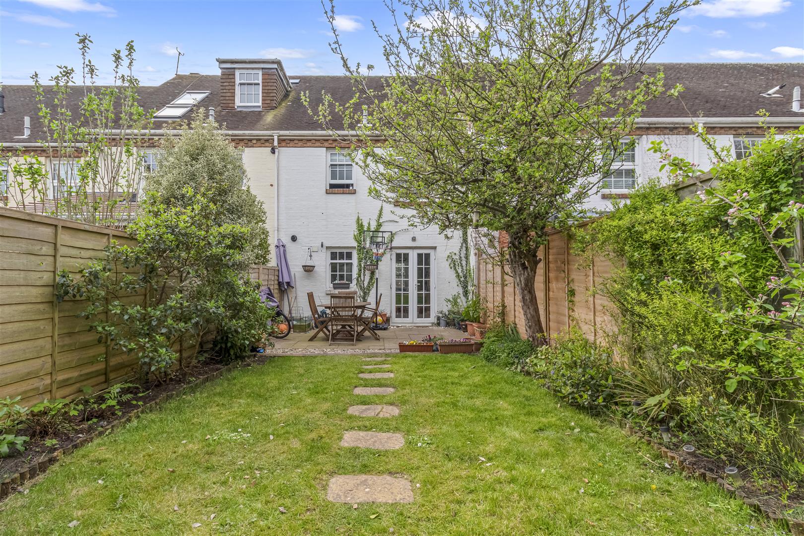 This charming and beautifully presented three-bedroom cottage is nestled in the picturesque and highly sought-after heart of Tarring Village.The double-glazed front door opens into a bright and practical entrance hall that sets the tone for the rest of the property. On the ground floor, a convenient cloakroom adds to the functionality of the layout, while the lounge provides a cosy and relaxing space, flowing seamlessly through an open archway into the dining area. French doors at the rear allow natural light to pour in and offer direct access to the garden, creating a lovely indoor-outdoor connection. The modern fitted kitchen is well-designed with contemporary units and work surfaces, offering ample storage and preparation space for cooking and entertaining.Upstairs, the first floor hosts three well-proportioned bedrooms, each offering a peaceful retreat, whether used as sleeping accommodation, home office, or guest room. The family bathroom is attractively finished and fitted with a clean, modern suite, perfect for everyday use.One of the standout features of the property is its delightful rear garden, which has been thoughtfully landscaped and maintained. Mainly laid to lawn, the garden includes an elegant Indian sandstone patio directly off the dining area with a second patio area at the far end of the garden offers a more secluded space to unwind. Mature trees and well-stocked shrub borders provide a high degree of privacy, colour, and charm throughout the seasons. A timber shed offers additional storage for gardening tools or outdoor equipment.The property falls in the catchment area for the highly regarded Thomas A’ Becket schools, making it a desirable choice for families. Worthing town centre, with its larger selection of shopping, leisure, and cultural facilities, is conveniently located just three miles away along with West Worthing station located just under a mile too.